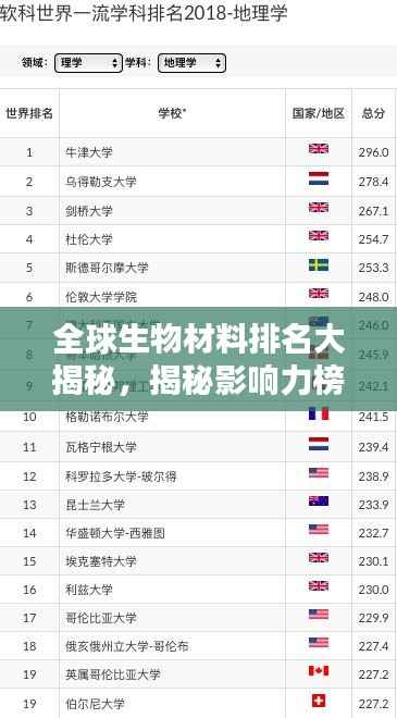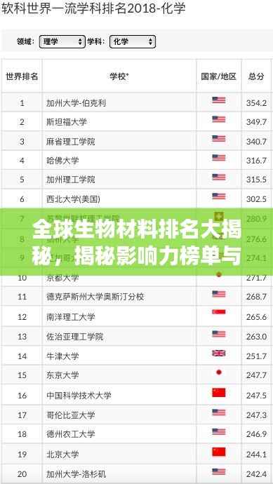 生物材料的發展對于人類社會的進步具有重要意義,全球范圍內的生物材料排名及其影響力反映了這一領域的最新研究成果和技術趨勢,我們期待未來生物材料領域能夠取得更大的突破,為人類的健康和發展做出更大的貢獻。