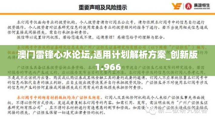 政策的實施將建立監督與評估機制,確保政策的順利執行和適時調整,總體而言,“澳門雷鋒心水論壇,適用計劃解析方案_創新版1.966”是澳門特區政府面對新時代挑戰所制定的全面性發展計劃,旨在促進澳門的和諧、繁榮與發展,為實現中華民族的偉大復興貢獻力量。