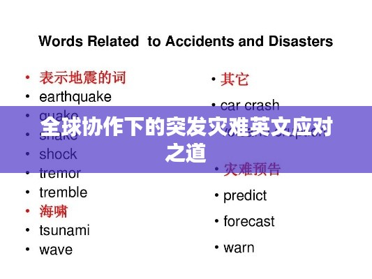 面對突發災難,全球各國需要共同協作,共同應對,各國應加強預警系統的建設,提高應對突發災難的能力,各國應加強救援力量的建設,提高救援效率,各國還應加強災后重建和恢復工作的協作,共同幫助受災地區重建家園,在這個過程中,英文作為國際交流語言,起到了重要的橋梁作用。